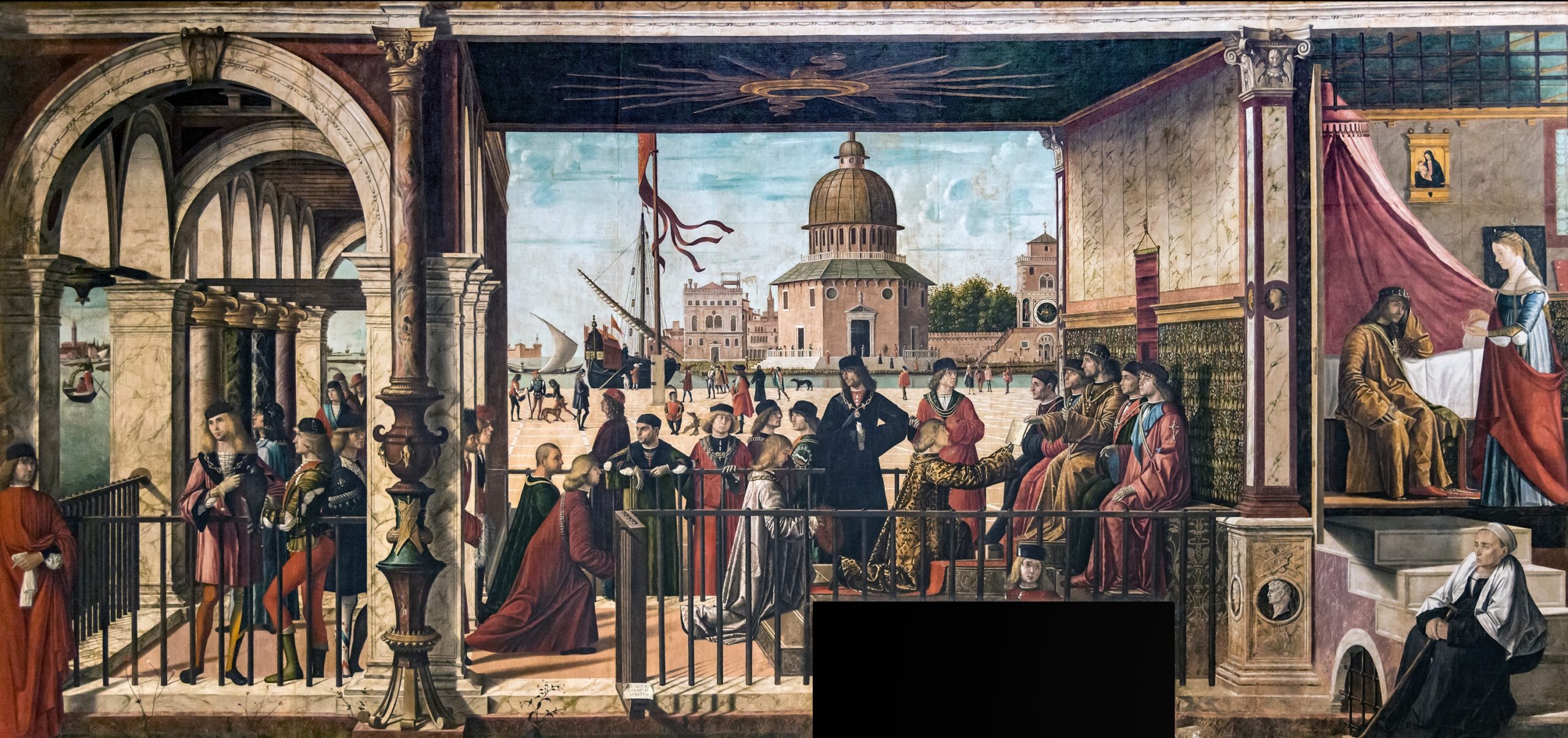 Vittore Carpaccio, Przybycie ambasadorów angielskich (L’Arrivée des ambassadeurs anglais à la cour du roi de Bretagne), 1495.