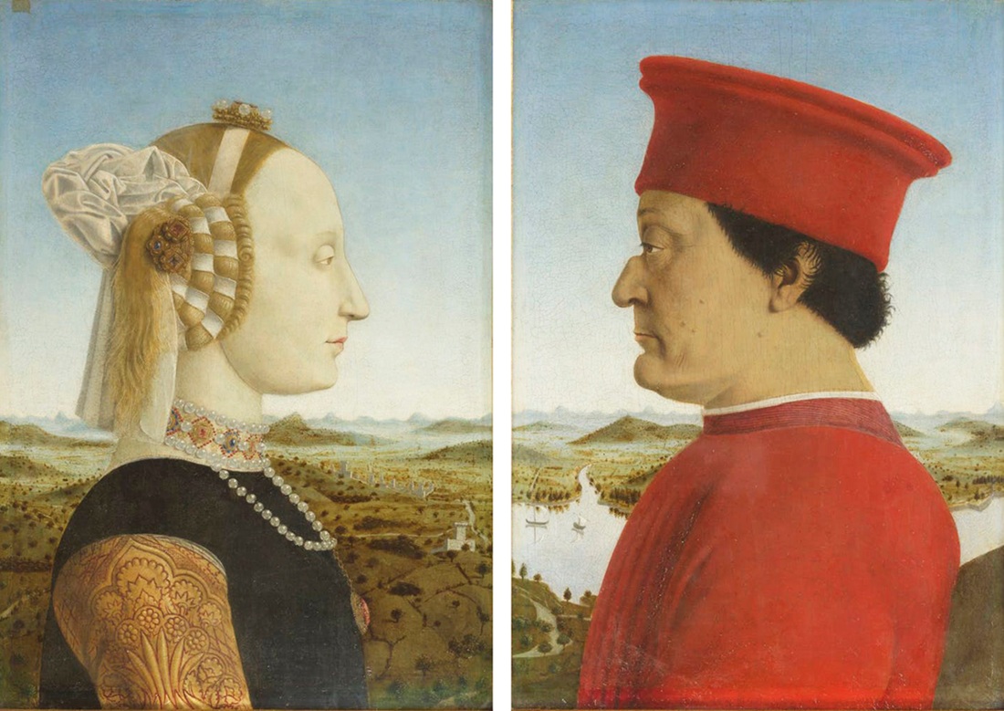 Piero della Francesca, Portret Federica da Montefeltro i jego żony, Battisty Sforzy (Doppio ritratto dei duchi di Urbino), 1465-1470.