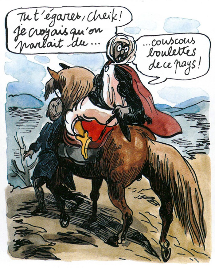 „Le vent dans les sables”, t. 1: L’Invitation au Voyage, 2005, scen., rys. i tusz. Michael Plessix.