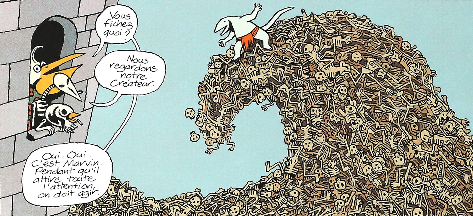 „Superdupont”, t. 2: Amour & forfaiture, 1980, scen. Gotlib i Jacques Lob, rys. i tusz Jean Solé.„Aquablue”, t. 2: Planète Bleue, 1989, scen. Thierry Cailleteau, rys. i tusz Olivier Vatine.