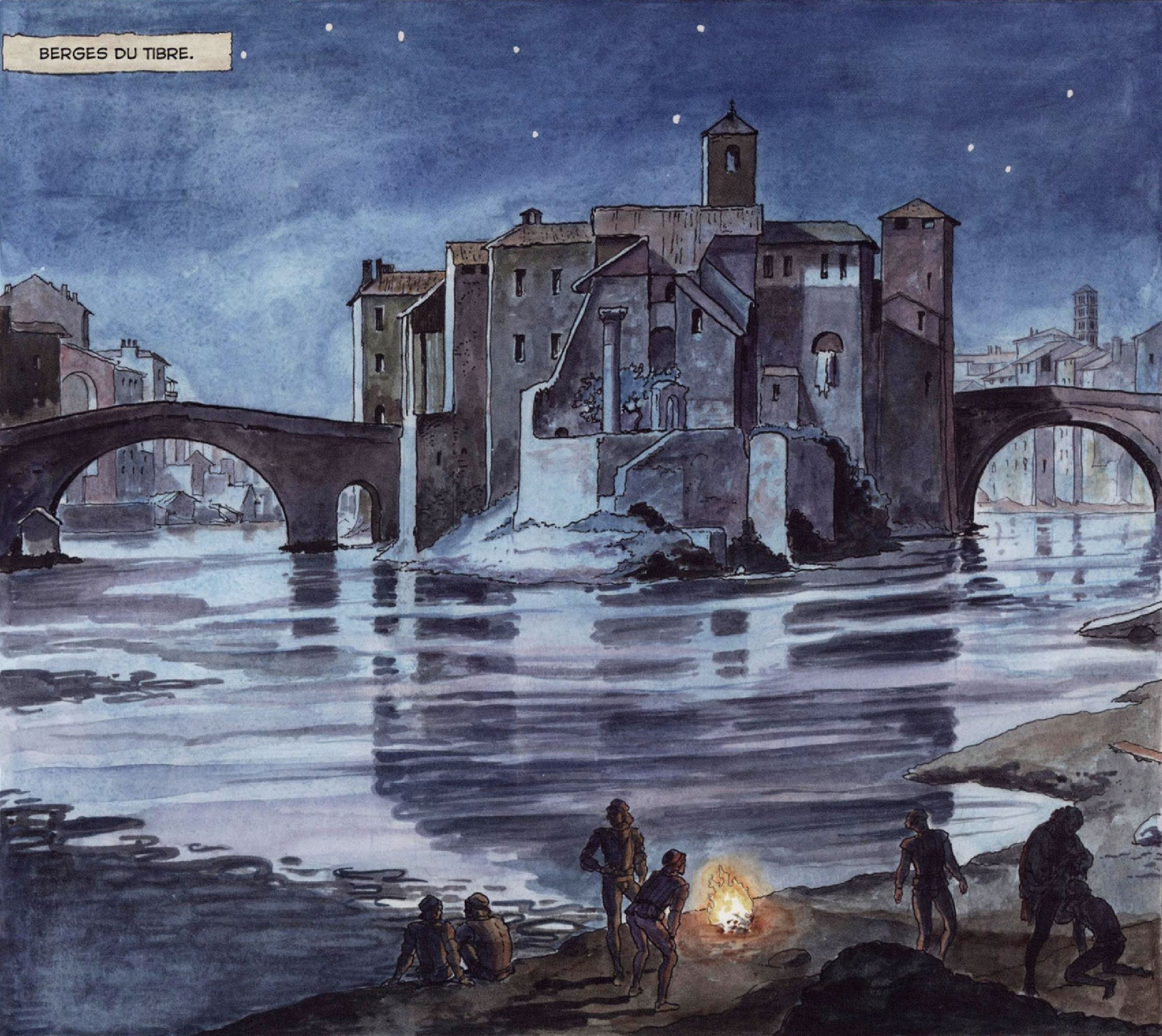 Caspar David Friedrich, Morze lodu (Das Eismeer), 1824.„Thanos Rising”, nr 5, 2013, scen. Jason Aaron, rys. Simone Binachi, tusz Simone Bianchi i Riccardo Pieruccini.Jean-Baptiste Camille Corot, Wyspa Tyberyjska i Most św. Barłomieja (L’Île et le pont San Bartolomeo), 1825-1828.„Borgia”, t. 4: Tout est Vanité, 2010, scen. Alejandro Jodorowsky, rys. i tusz Milo Manara.