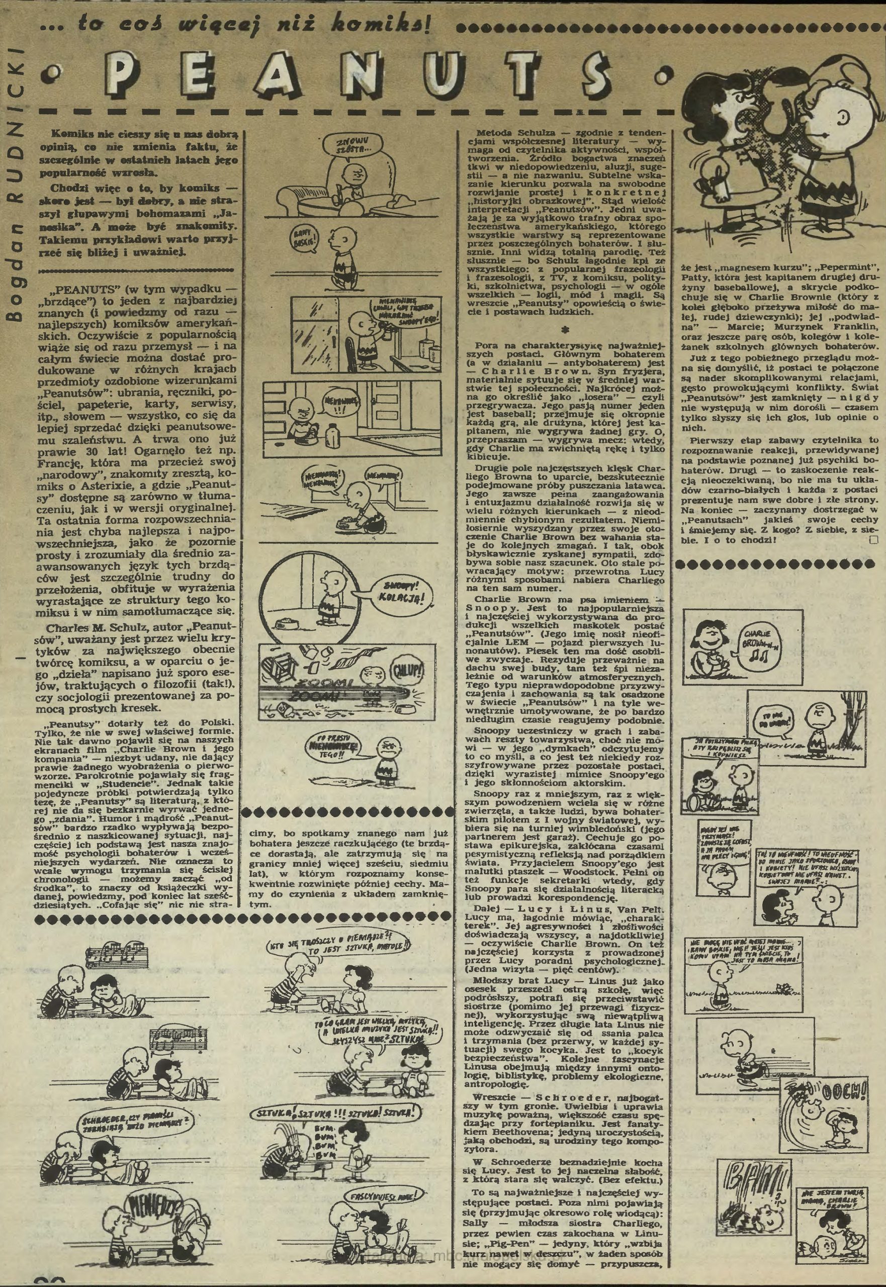 Bogdan Rudnicki, Peanuts… to coś więcej niż komiks!, „Przekrój”, 1980, nr 1853-1854, s. 20.