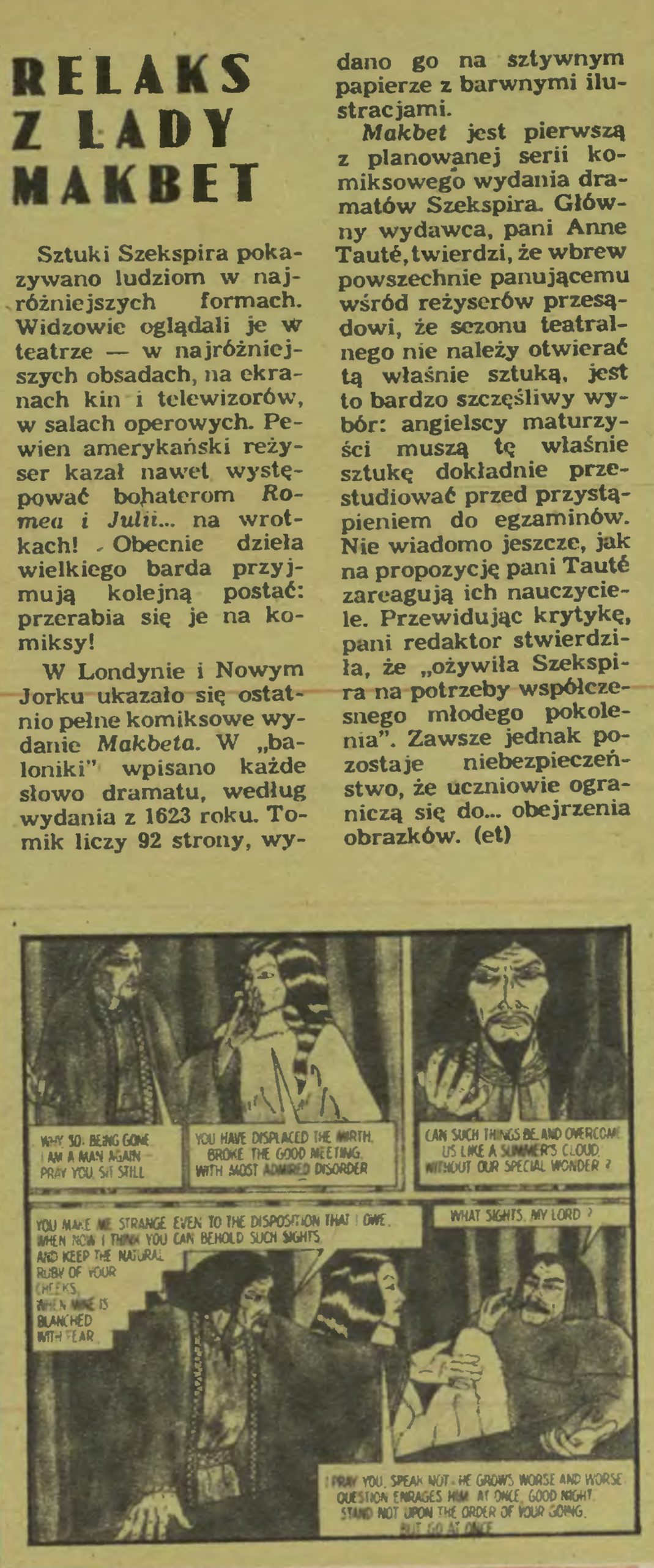 (et), Relaks z Lady Makbet, „Przekrój”, 1982, nr 1948, s. 13.