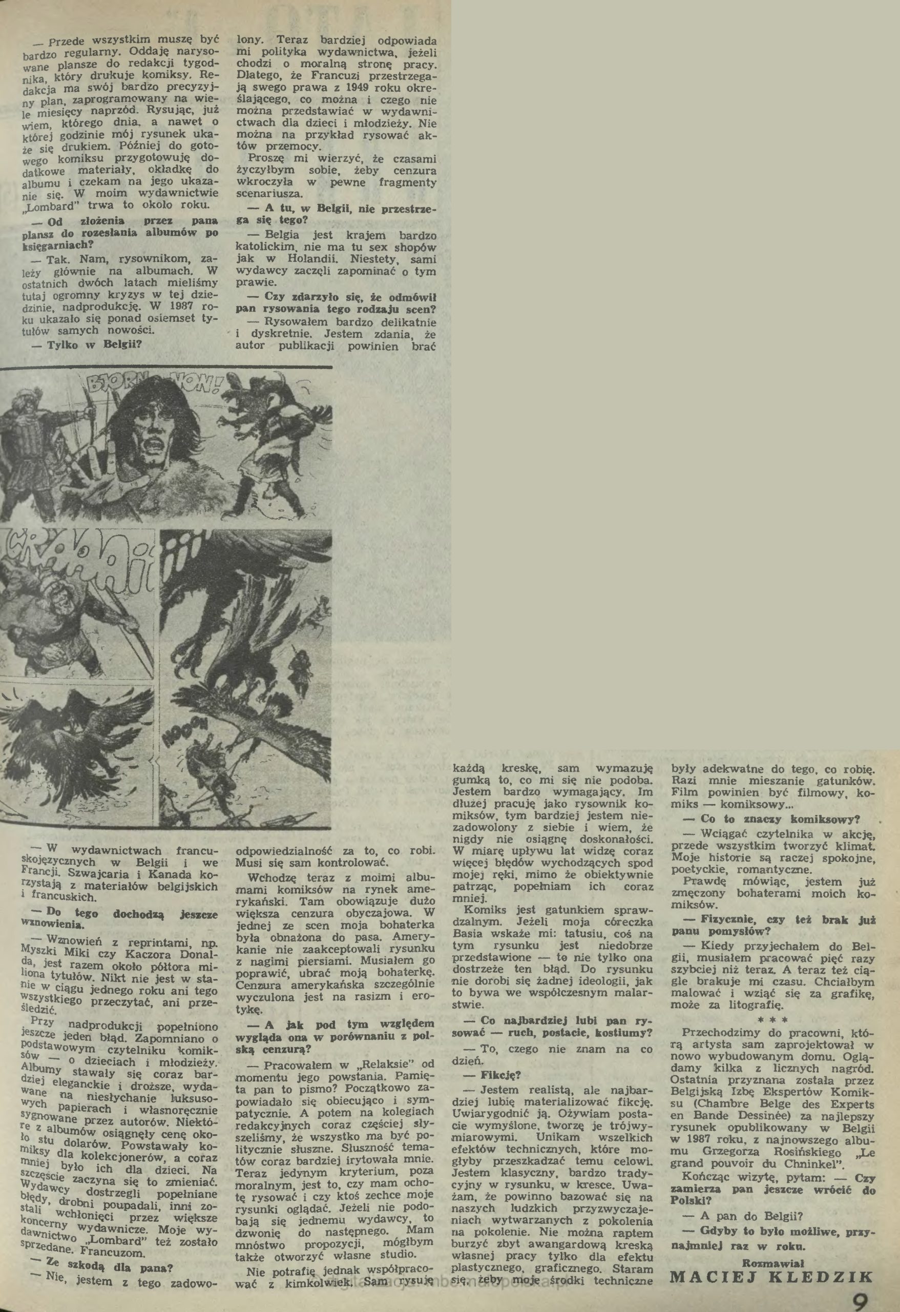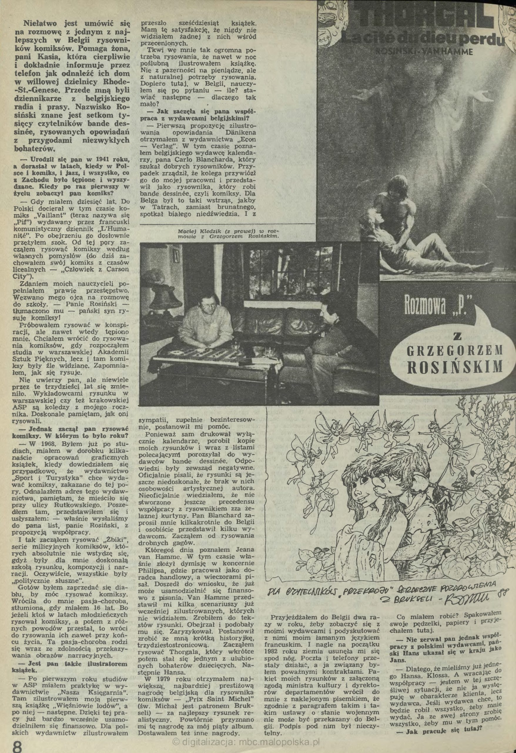 Grzegorz Rosiński, Rozmowa „P.” z Grzegorzem Rosińskim, rozm. Maciej Kledzik, „Przekrój”, 1989, nr 2303, s. 8-9.